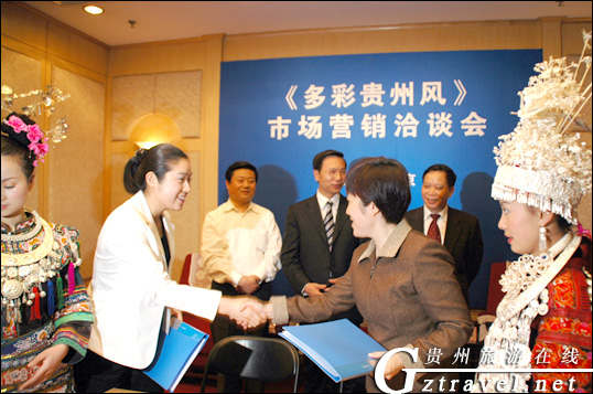 4月29日下午,北京六大旅游企业与多彩贵州文化艺术有限公司签订《多彩贵州风》大型民族歌舞门票销售协议,贵州旅游企业与北京旅游企业签订了旅游合作协议,这道旅游套餐的成功签约标志着我省旅游文化产品市场运作取得了累累硕果。