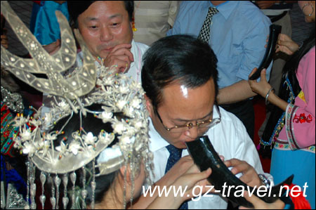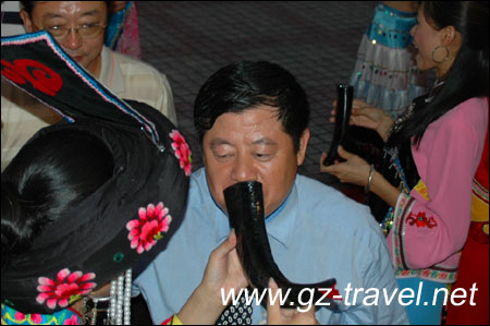 民族姑娘向贵州省人民政府副省长蒙启良敬上贵州纯酿牛角米酒