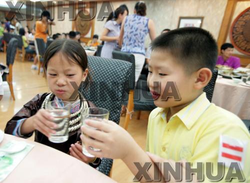7月17日,贵州小客人与杭州小朋友一起吃饭。