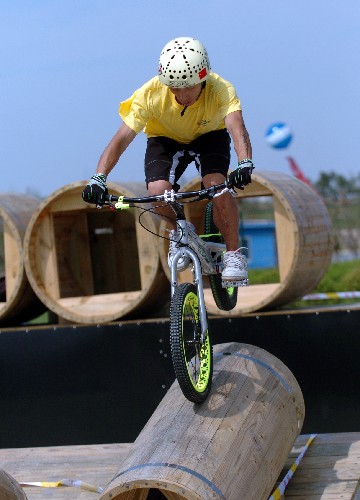 当日,来自贵州的选手李佳俊在自行车攀爬第一轮比赛中。