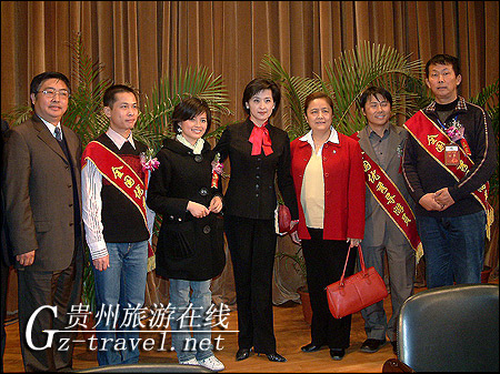 贵州省旅游局局长(右三)贵阳市旅游局局长(左一)等与优秀导游合影