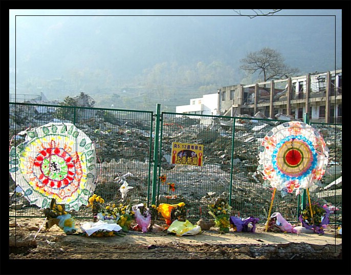 每当看到生者为逝去的人们献上寄托无限哀思的花束,仰望目睹瞬间灾难而为之变色的天空,我不停的问:逝去的我的朋友,北川中学的学生们,所有在大地震中遇难的人们,你们在天堂还好吗......