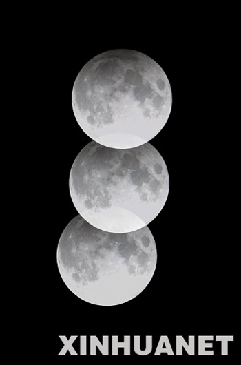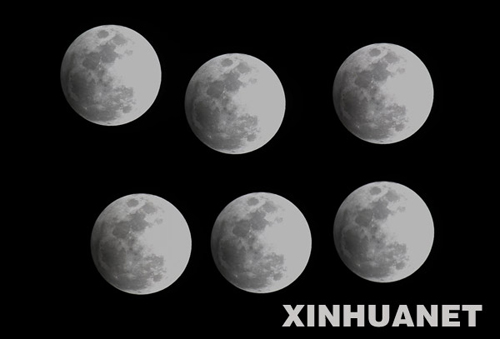 通过多重曝光拍摄到的拉萨上空的元宵月(2月9日摄)。