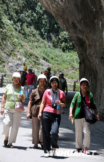 两名福建游客4月30日在台湾花莲太鲁阁九曲洞游览时意外遭到落石砸伤后,当地旅游观光部门推出“戴安全帽旅游”,在景区配备安全帽供游客使用,防止再发生事故,受到游客欢迎。