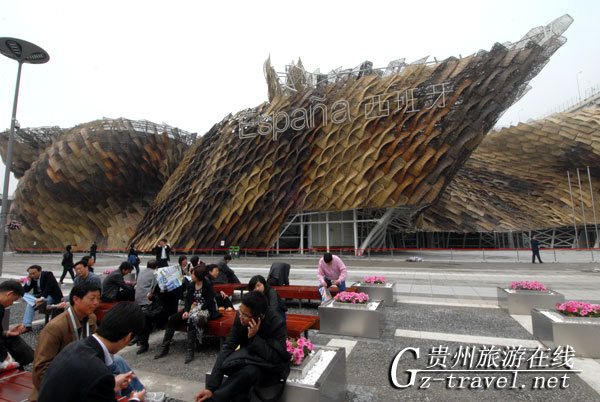 西班牙馆,是一座复古二创新的“藤条篮子”建筑,外墙由藤条装饰,参观者宛若置身于西班牙城市的街道上。