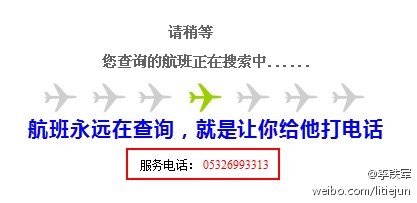 假机票预订网站的航班信息不全,只有几条线路,不能实时检索具体的航班信息。当在查询框中任意输入需要检索的航班,点击查询时,出现的往往不是查询结果,而是网络忙、系统维护。同时,骗子还会在网页显示一个电话让你和他联系。