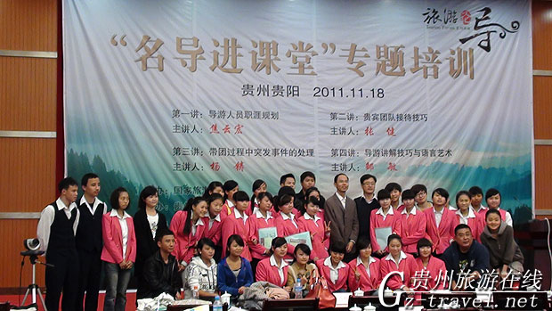 本网讯 2011年11月18日,由国家旅游局主办,贵州省旅游局承办,贵州师范大学国际旅游文化学院、贵州旅游管理学院协办的“名导进课堂”的专题培训在贵州省政协议政厅举办,并邀请了来自四川、云南、广西和贵州的四位导游名师进行了专题培训。