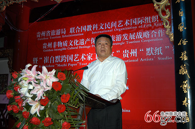 启动仪式上,贵州省旅游局局长傅迎春致辞表达对远道来宾的热烈欢迎。傅迎春说,联合国教科文民间艺术国际组织iov及“崔自默跨国艺术家工作室”一行来到神奇美丽的贵州,让我们有机会共商贵州非物质文化遗产保护与旅游大计,这对于探索文化旅游与旅游文化的融合发展是一件十分有意义的事情,同时也让我们有机会见证“黙纸”艺术,让我们感受民间技术如何通过艺术大师之手走出大山。走向世界的价值。