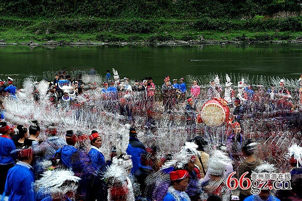 每年农历三月十五,是苗族传统的“姊妹节”。在这些日子里,按照贵州黔东南州苗家的传统习俗,要吃姊妹饭。姐妹饭是姑娘们上山采摘野生植物的花和叶,用糯米染成五颜六色后蒸熟而成的,吃罢姐妹饭,姑娘与小伙子们身着节日盛装和民族服装,欢天喜地来到陡水河畔, 参加娱乐与体育活动:游方唱山歌、吹芦笙、沙滩踩鼓、鸣锣击鼓、跳芦笙舞、划船、斗牛等。