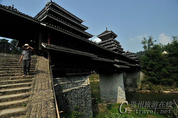 地坪风雨桥是黎平县内规模最大、造型最美的—座风雨桥,俗称“花桥”。位于贵州省黔东南州黎平县地坪乡,距黎平54公里。从这往广西走到三江县可到全国最大的侗族程阳风雨桥。