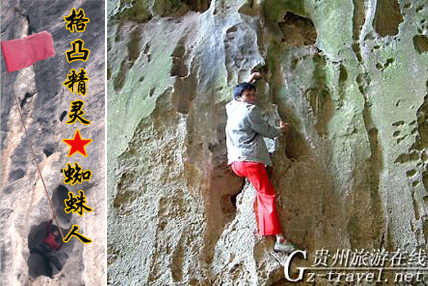 在贵州省紫云县格凸河两岸,这里生活着一群特殊的人群--“蜘蛛人”。过去,由于土地少,粮食不够吃,格凸的苗族同胞们除了种地,还得通过外出做小生意、打猎和攀岩为生。攀岩,就是通过徒手攀爬附近的山洞和岩石,挖草药、采燕窝等换回粮食生活。 当地人都管能徒手攀岩的人叫“飞人”,而外界则给他们取了一个贴切的名字“蜘蛛人”。