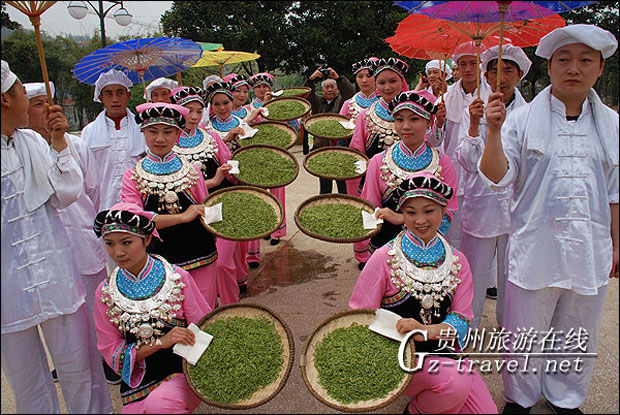 毛尖茶,又名“白毛尖”、“细毛尖”、“鱼钩茶”、“雀舌茶”,外形卷曲似螺形,白毫特多,色泽绿润。产于贵州省黔南地区都匀市。是贵州三大名茶之一, 也是中国十大名茶之一。主要产地在都匀市团山、哨脚、大槽一带,这里山谷起伏,海拔千米,峡谷溪流,林木苍郁,云雾笼罩,冬无严寒,夏无酷暑,四季宜人,年平均气温为16 c,年平均降水量在1400多毫米。加之土层深厚,土壤疏松湿润,土质是酸性或微酸性,内含大量的铁质和磷酸盐,这些特殊的自然、条件不仅适宜茶树的生长,而且也形成了都匀毛尖的独特风格。