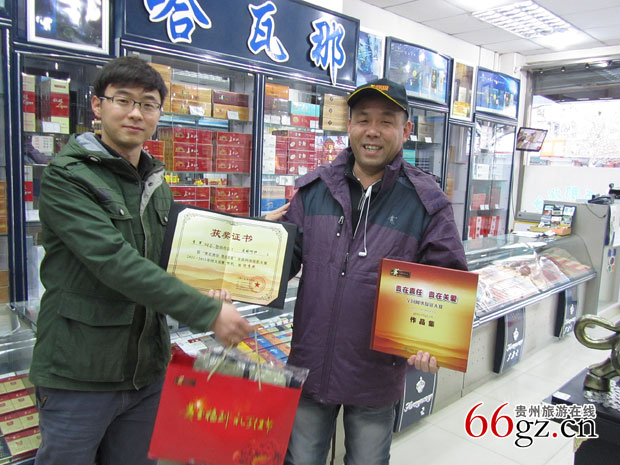 贵州旅游在线讯 近日,“贵在责任 贵在关爱”全国网络摄影大赛从年终获奖名单中随机抽取了4名获奖者并将亲自为他们送上奖品。第一位幸运的获奖者便是来自天津的李军,其摄影作品《爱的呵护》荣获“相机类”优秀奖。摄影大赛工作人员在天津亲自为其送上奖品,祝贺他获此奖项并感谢摄友对本次大赛的支持。