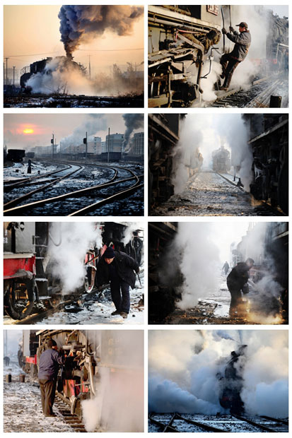 点评:此组作品流露出经典的唯美主义造型和纯粹的现实主义手法,光影间展现的是一种行将消失的工业文化。总有一样东西的存在在提醒着那些逝去的时光,有时候只一眼,记忆便像潮水般涌进心头。在面对飞逝的发展时,在面对更加方便快捷的飞机、高铁时,或许我们已经忘记了儿时记忆中那呼啸而过的汽笛声,伴随着我们整个童年的声音即将消失不见。往事如烟,却让人深深怀念。因此在迷茫的烟雾背后,看不出是哀怨还是希冀,但有一点是肯定的:巨大的黑色火车让画面的重心有了稳定的结构,至少不失催人奋进的力量。作者以橘色调温暖着那被遗忘的记忆角落,空旷或繁忙的场景,表达了即将遗失的寂寥和工作在一线的工人们对蒸汽车的情怀。整组照片的氛围和后期控制都做得很出色,显示了拍摄者全面的综合能力和学识素养,以及胸有成竹、游刃有余的创作心态。