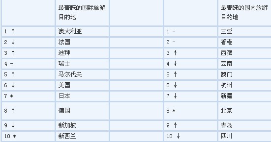 最青睐的国际旅游目的地最青睐的国内旅游目的地