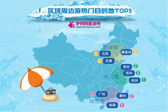 《报告》显示,今年暑期周边游出游人次是去年的3.1倍,北上广深依然是周边游主要客源地,占全国周边游客比超五成。其中,长三角居民最青睐的周边游目的地依次为:杭州、常州、苏州;京津冀居民最青睐的周边游目的地为:北京、天津、秦皇岛;珠三角居民最青睐的周边游目的地为:珠海、惠州、广州。