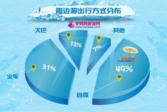 《报告》显示,大部分游客选择1-2天的周末出游为主,占比超8成。交通方式上,自驾游依旧主流,占比近5成;高铁出游人次较去年有所增加,占比达31%。驴妈妈CEO王小松表示,随着国家“八纵八横”高铁规划的出炉和全国2小时旅游圈的形成,高铁布局的深化将大力带动周边游的发展,未来高频次的高铁周边游将成为居民休闲度假新常态。