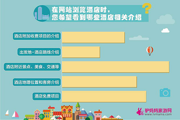 《报告》显示,近七成消费者通过手机APP预订酒店,在线旅游网站已经成为最普遍的在线酒店预订渠道,其次为购物类电商平台和酒店官网等途径。消费者将驴妈妈等在线旅游网站作为首选的主要原因是预订体验较佳,当然,价格、安全性、使用习惯也都是不可忽视的原因。在浏览在线旅游网站时,超过半数的消费者最希望了解酒店周边景点、美食、交通;可见,“在当地怎么玩”已成为酒店消费者最重要的细分需求。