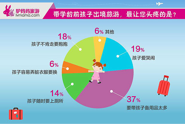 驴悦亲子游负责人樊强表示,学龄前(6岁以下)儿童出境旅游还是存在不少痛点。调查也显示,有近7成家长认为孩子学龄后(6岁以后)出境旅游较为理想,在带娃出游最头疼的问题中,孩子备用品太多、孩子爱哭闹、不肯走要抱抱成为带学龄前儿童出境旅游的三大痛点。