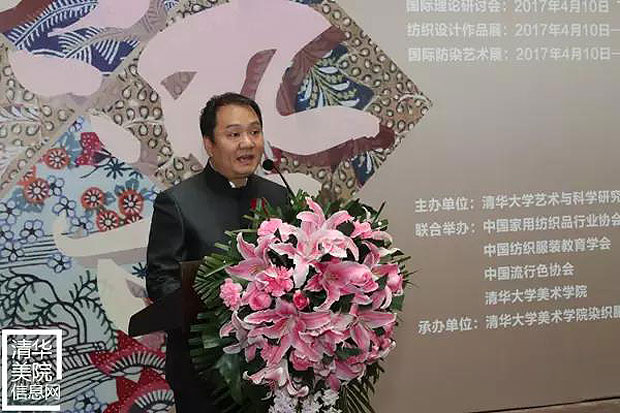 2017年4月10日下午,2017年第十七届全国纺织品设计大赛暨国际理论研讨会以及2017年国际防染艺术展开幕式在清华美院美术馆举行,开幕式由清华美院染织服装艺术设计系党支部书记、副主任张宝华副教授主持。清华美院院长、清华大学艺术与科学研究中心主任、清华大学开云(Kering)艺术教育基金管理委员会主任鲁晓波教授,中国纺织服装教育学会纪晓峰秘书长,日本东京艺术大学染织系副主任上原利丸教授致辞。