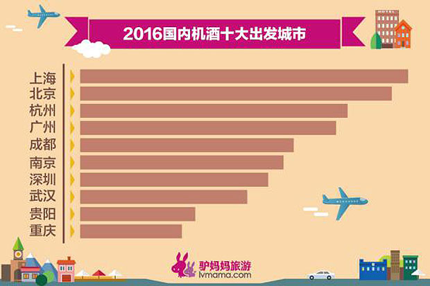 驴妈妈旅游网数据显示,上海、北京、杭州、广州、成都、南京、深圳、武汉、贵阳、重庆成为2016国内机酒十大出发城市。其中,上海、杭州、南京等华东地区游客最爱去三亚、厦门、长白山-哈尔滨、成都-九寨沟等地;北京等华北地区游客多数前往三亚、厦门、西安等地;广州、深圳等华南地区的游客较倾向前往长白山-哈尔滨、厦门、北京等地;成都、贵阳、重庆等西南地区游客大多前往三亚、桂林-北海等地;武汉等中部地区的游客多数前往三亚、广州、上海等地。