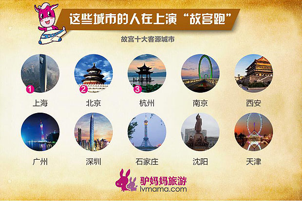 凭借着人气网红“故宫淘宝”和一部充满“匠人情怀”的纪录片《我在故宫修文物》,故宫近几年“火了又火”。2016年,故宫参观人数创下1600万人次的历史新高,是迄今为止世界上参观人次最多的博物馆。驴妈妈旅游网数据显示,上海、北京、杭州、南京、西安、广州、深圳、石家庄、沈阳、天津成为故宫2016年十大客源城市。同时,“IP开发+电商”的“故宫模式”也被包括世界遗产在内的国内景区争相效仿复制。