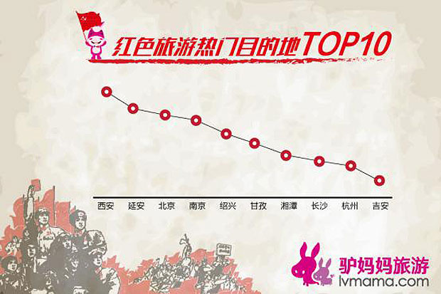 《报告》显示,红色旅游十大热门目的地依次是:西安、延安、北京、南京、绍兴、甘孜、湘潭、长沙、杭州和吉安。西安的西安事变纪念馆、革命公园等,延安的延安革命纪念馆、中国抗日军政大学纪念馆等,北京的毛主席纪念堂、中国人民革命军事博物馆等,都是人们回顾历史、缅怀先烈的热门去处。