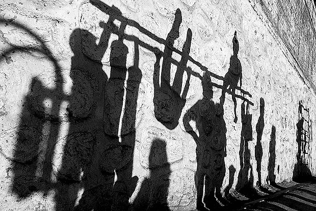 如今在倡导文明健康生活方式,提高全民身体素质和健康水平的大背景下,国家投资修建了许多健身场。各种健身器材满足不同年龄段人群的需要,其目的是吸引更多的市民来参与活动。阳光充盈的早晨,在山西太原某个健身场上,孩童在双杠上玩耍,影子投射在旁边的白墙上,颇有几分戏剧色彩。