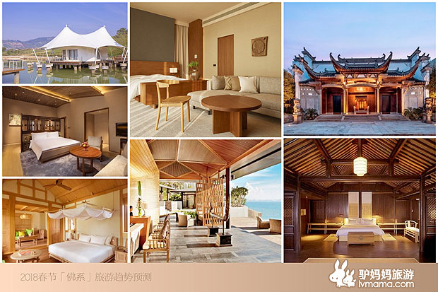 周雄飞介绍,峨眉山、庐山、五台山、普陀山、终南山等都是禅修旅游的热门目的地。同时,“佛系”景区周围禅意浓郁的酒店也非常受游客青睐。驴妈妈数据显示,普陀山雷迪森庄园、杭州法云安缦、无锡灵山小镇·拈花湾、无锡灵山精舍、九华山涵月楼度假酒店、三亚南山休闲会馆禅修主题、深圳东部华侨城菩提宾舍、青城山六善酒店、成都博舍等都是春节人气颇高的禅修酒店。