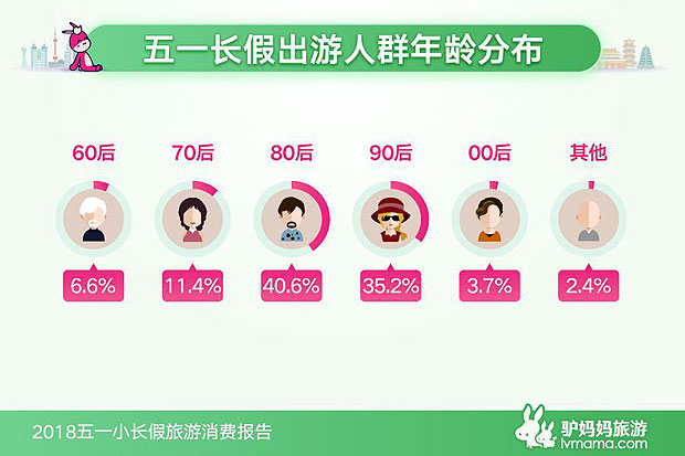 五一假期时间较短,68.8%的游客选择出游2天,劳逸结合地度过假期。从出游人群的年龄分布来看,80后占比40.6%,90后占比35.2%,年轻人撑起了旅游消费的半边天。三天假期中,4月29日是出游最高峰,当日出游人数占比49.8%。上海、北京和南京是最热门出发地前三甲,经济较为发达的二三线、非省会城市居民出游热情也空前高涨,来自无锡、佛山、常州等出发地的游客数量增长迅速。超过7成的客人使用移动端下单,追求方便、快捷、高品质是年轻游客的标签。