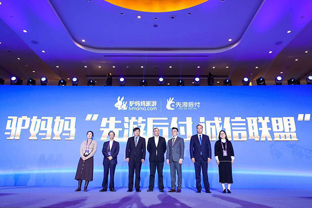 驴妈妈集团副总裁黄春香、中旅银行行长游翔、上海金悦国际旅行社董事长徐连胜、江苏五方国际旅行社总经理赵建兰一起在会上参与了驴妈妈“先游后付诚信联盟”发布仪式。同时,上海市副市长陈群、全国工商联副主席、上海市政协副主席王志雄、中国旅游研究院院长戴斌、驴妈妈创始人、景域集团董事长洪清华,及来自全国各大景区、酒店、旅行社的掌门人,上海主流媒体等1000多名与会嘉宾共同见证。