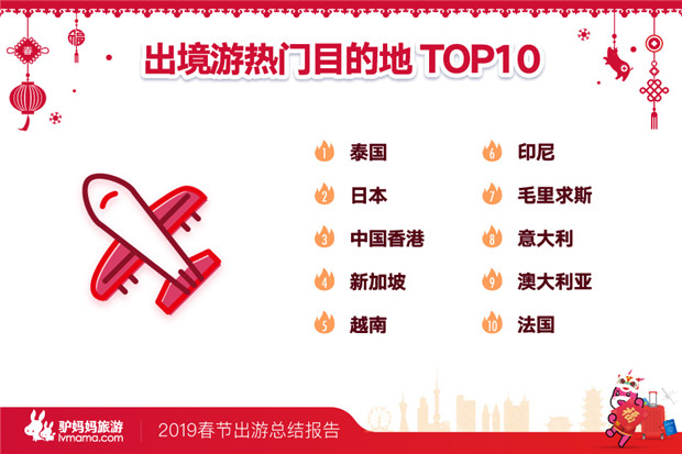 从目的地来看,泰国、日本、中国香港、新加坡、越南、印尼、毛里求斯、意大利、澳大利亚、法国成为春节出境游十大热门。其中,泰国落地签免费、日本多次签条件放宽,一二线城市家庭游客、多次出游游客从预订到出发时间,相比往年有大幅缩短。而部分小众目的地也颇受青睐,如到日本岩手县安比高原滑雪、爱媛县泡汤观光等。