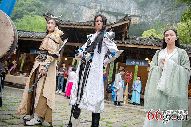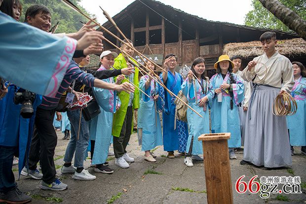 “酉阳桃花源第二届赶古节”启动仪式上,不仅有中华民族传统庄严的“开市祈福”,包括焚香、献礼、拜礼、分食福胙、读祝等一系列秦汉时期祭祀活动。更是引进让腾讯游戏玩家们雀跃、让游客们争相拍照的《新剑侠情缘手游》COSPLAY精彩表演。再加上非物质文化遗产木叶吹奏的传承者———张宗应老师为大家带来的《木叶情歌》,引来现场游客热烈鼓掌。最后的投壶和竹竿舞等互动游戏,更是让整个活动现场热闹非凡,高潮迭起。很多游客通过互动游戏获得了酉阳桃花源的定制水壶,水杯以及各种桃花源定制文创礼品。