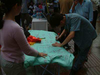 开幕仪式上,贵阳市旅游局领导带头进行了《2003森林之城健康生态游》万人签名助旅游活动。
