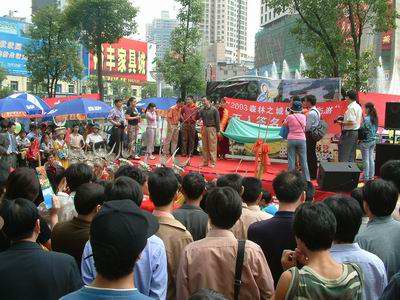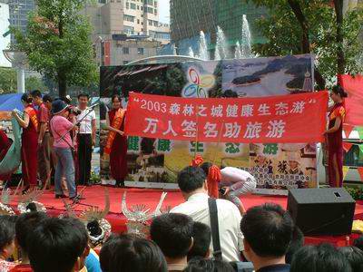 6月21日,《2003森林之城健康生态游》活动在筑城喷水池正式拉开帷幕。数十家旅行社、旅游景点、饭店走上街头向市民做宣传和推荐。