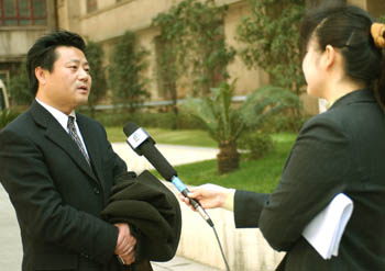 贵州省旅游局局长杨胜明在接受贵州电视台记者采访