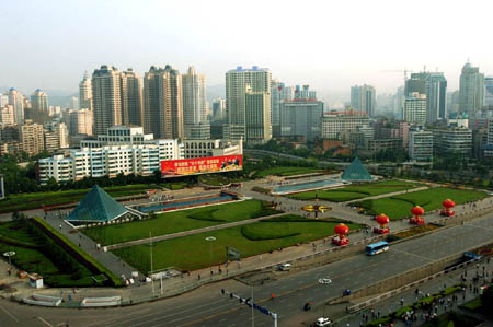 这是绿草覆盖的人民广场。经过几代人长达数十年的努力,贵阳市已经成为世界上喀斯特地区植被最好的中心城市之一。1999年以来,贵阳市每年将以森林建设为主要内容的城市绿化,列入向全市人民承诺办好的十件实事之一,城市森林建设速度不断加快,质量不断提高,全市森林面积覆盖率和绿化覆盖率分别达到34.77%和40.47%,“城在林中、林在城中、四季常青、人居舒适”的面貌已经呈现出来。今年11月19日,在贵阳举行的首届中国城市森林论坛上,贵阳市获得国家林业局授予的中国首个“国家森林城市”称号。新华社记者 侯少华 摄