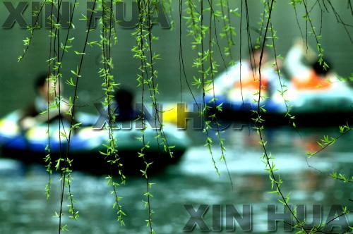 近日,贵阳市花溪区平桥景区的柳条吐绿,鲜花盛开,吸引众多市民前来感受春天的气息。