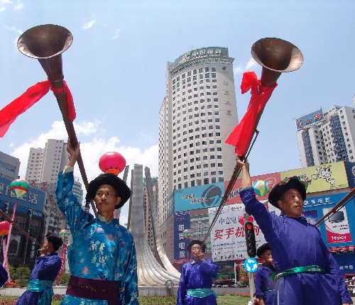 数千少数民族同胞在贵州省贵阳市街头举行“民族欢歌”游街活动,欢庆传统节日“四月八”的到来