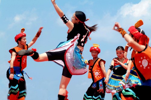 5月15日,苗族同胞载歌载舞欢度“四月八”。 当日是贵阳苗族同胞传统节日四月八,贵州省贵阳市花溪区数千苗族同胞身着盛装汇聚高坡乡云顶草场,吹笙奏笛,对歌谈心,载歌载舞欢庆节日。