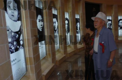 当日,两位老人正在参观纪念馆新馆的缅怀厅。