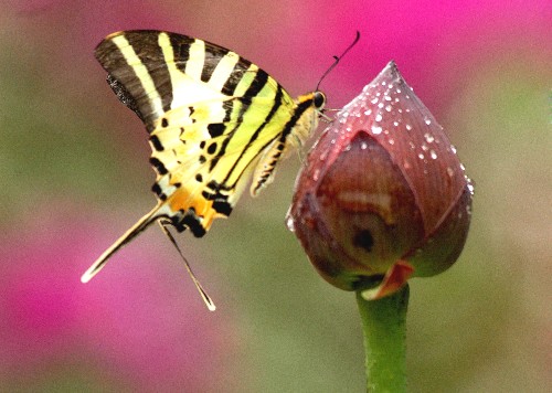 10月4日在贵阳大型活体蝴蝶科普展上拍摄的“蝶落荷苞”。