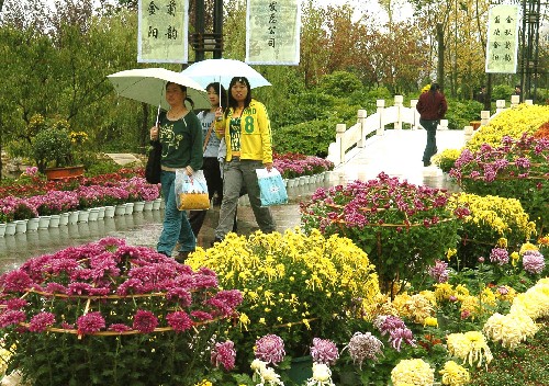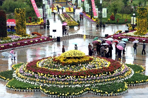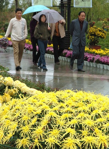 10月15日,贵阳市金阳新区首届大型菊花展在细雨中开幕,300多个品种的12万盆菊花参展。