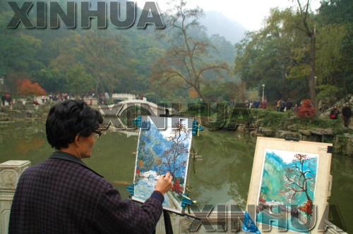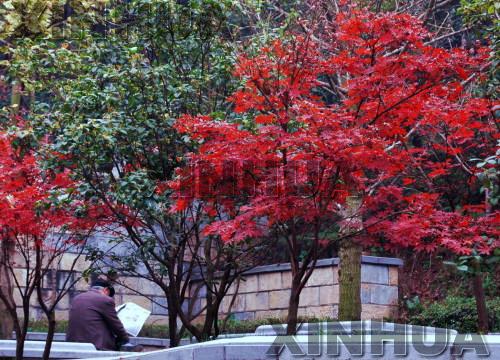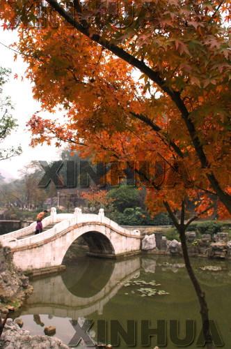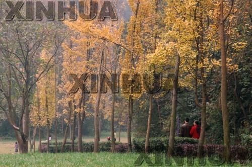 贵阳黔灵山是贵州省著名的城市中的公园。近几年来,公园有关部门为改变黔灵山景区一年四季皆绿色的景象,陆续种植了不少枫香树、银杏树,每到深秋时节枫香树红红火火,银杏树金黄灿烂,不少游客留连忘返。(新华社发 乔启明摄)