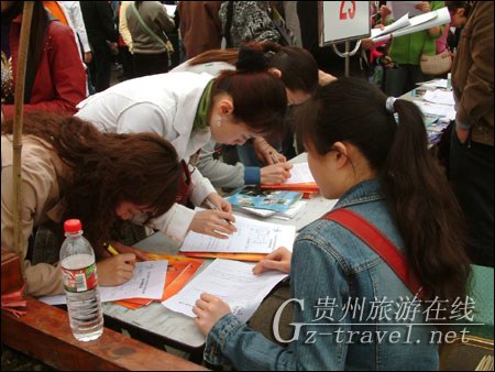 活动现场,多彩贵州旅游形象大使选拔大赛贵阳赛区各区、市、县都设立海选报名点,现场咨询报名的群众踊跃;黄果树、龙宫、红枫湖、天河潭、格凸河、龙里大草原等40多家省内著名景区、景点在现场进行宣传介绍。配合“3·15”活动,近百家旅游企业、宾馆饭店、旅游车队参加了诚信旅游服务咨询宣传。