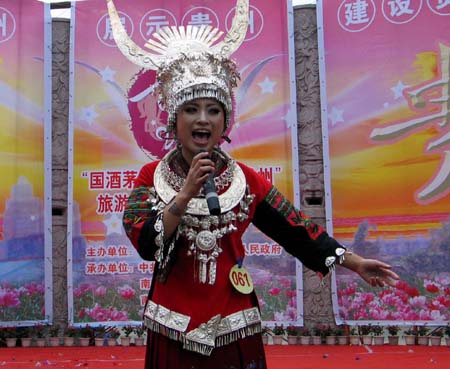 参加“民族姑娘”选拔的选手袁敏表演歌舞《醉苗乡》
