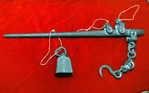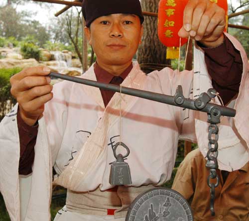 在贵阳唐文化主题国庆中秋游园观赏会上,一把石秤吸引了众人的目光。这把石秤由贵州锦屏县农民刘昌林用石头雕凿而成,长40厘米,重2.5公斤。
