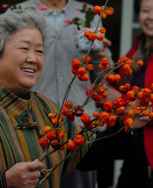 进入秋季后,贵阳市开始流行一种深受市民喜爱的新奇“水果鲜花”,这种新型“插花”是各种色泽鲜艳、保存时间长的水红柿、金桔、小苹果、柿子等水果去叶后“生成”的。