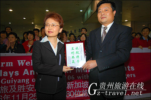 省旅游局副局长傅迎春迎在机场接新加坡游客
