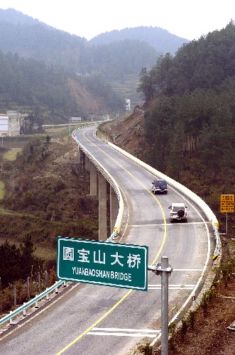 12月9日,汽车行驶在贵开高等级公路圆宝山大桥段。